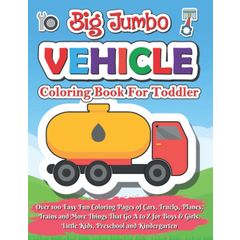 Big Jumbo Vehicle Coloring Book For Toddlers: 100 pages of things that go: Cars, Trucks, Trains, Tractors, Buses, Airplanes, and Ships & More - ... &