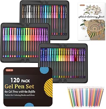 Gel Pens, Shuttle Art 120 Pack Gel Pen Set Packed in Metal Case, 60 Unique Colors with 60 Refills for Adults Coloring Books Drawing Doodling Crafts ...